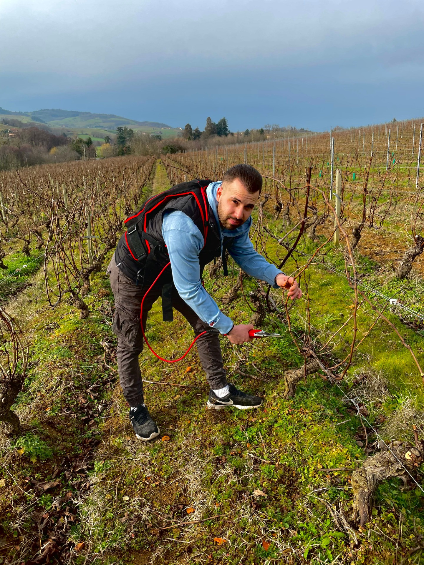 Le rognage est la coupe des branches à la cime ainsi que sur les côtés de la vigne. Nous pratiquons un seul rognage après la floraison afin de limiter le stress de la vigne.