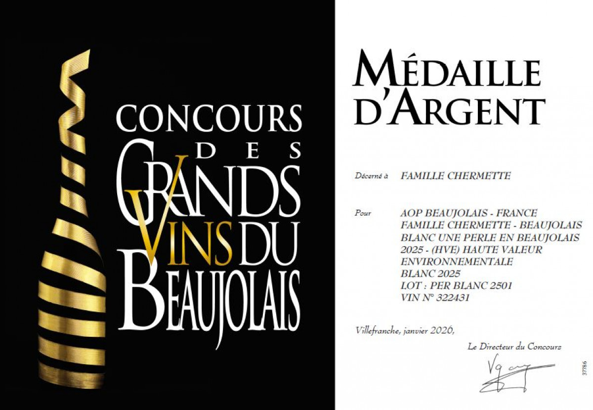 Médaille d’Argent Concours Des Grands Vins Du Beaujolais