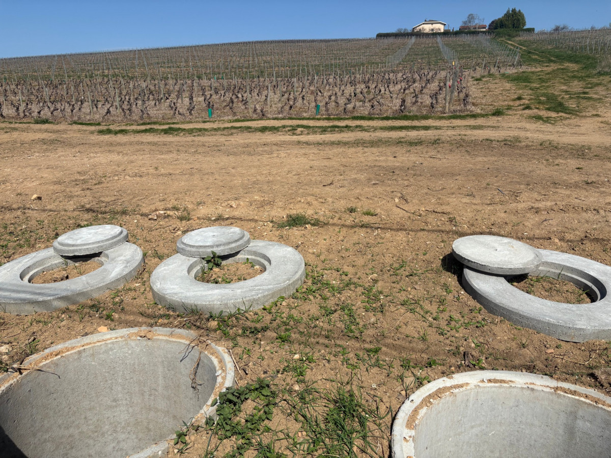 The earthmoving company organizes a very precise network of trenches with drains, on the advice of Pierre-Marie Chermette to allow the drainage and evacuation of springs and runoff in the ditches at the bottom of the vines.