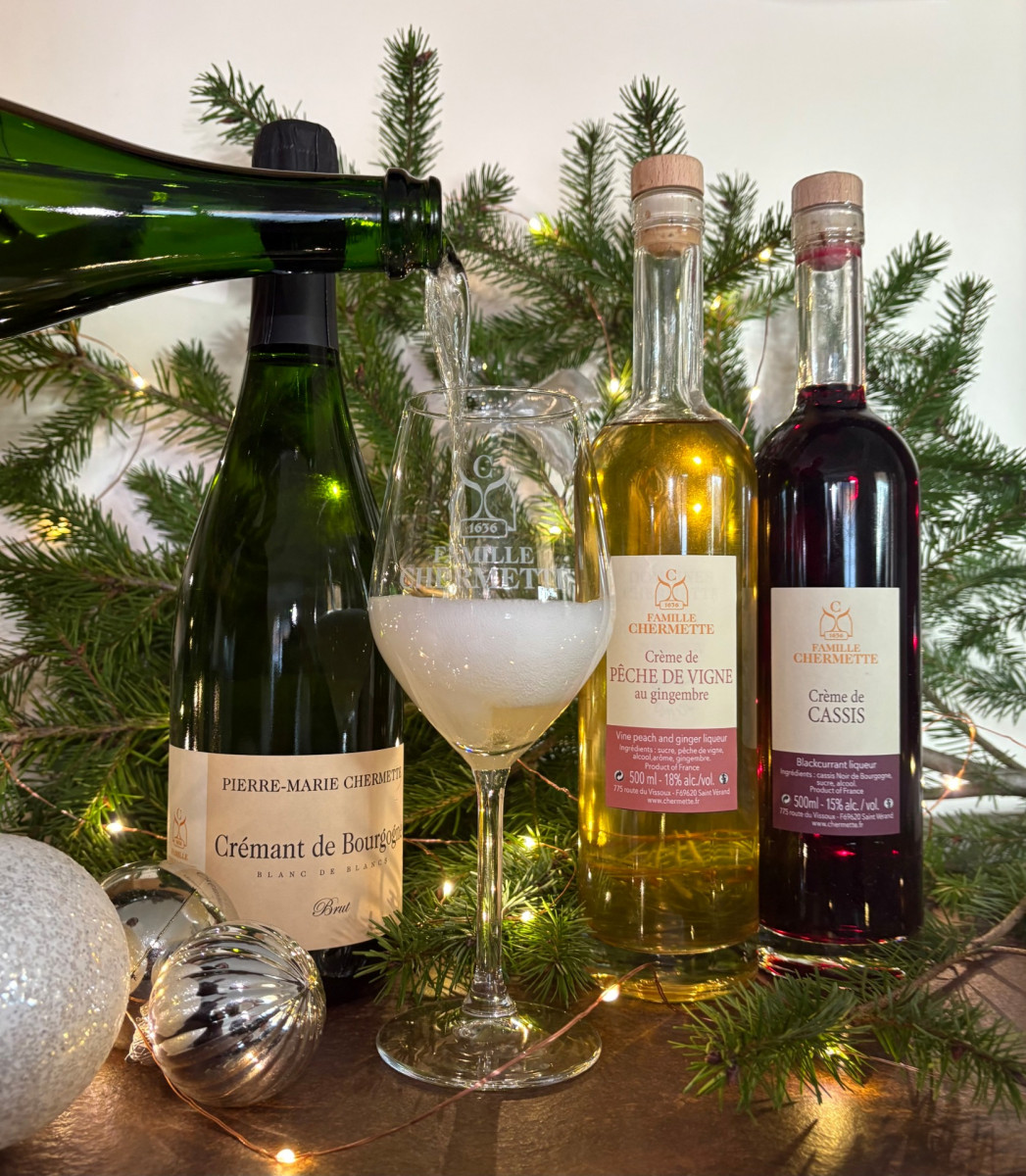 Célébrez ces moments conviviaux avec nos Crémants de Bourgogne accompagnés (ou pas) de nos délicieuses crèmes de fruits, cassis de Bourgogne ou pêches de vigne au gingembre.