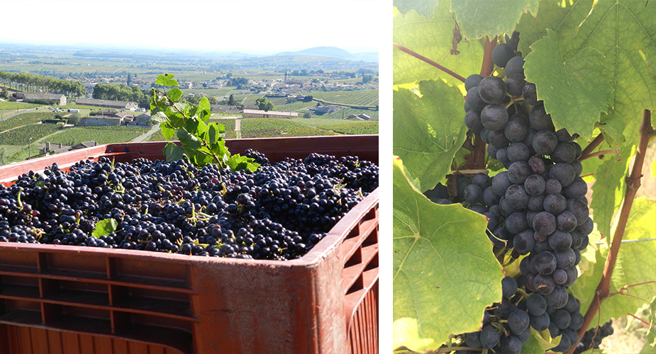The maceration period in concrete vats varies from 5 to 7 days for Beaujolais wines and from 7 to 9 days for crus and Pinot Noir, at a moderate temperature of 24 to 25 degrees to obtain the freshness of the fruit. The grapes are then pressed in a pneumatic press. The juice obtained is aged in vats, barrels or casks, depending on the wine, where it completes alcoholic and malolactic fermentation to become wine.